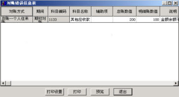 (此時(shí)的現(xiàn)象:退出個(gè)人往來期初錄入界面,則“其它應(yīng)收款”期初余額為200元。但明細(xì)記錄中顯示的是100元,這樣就造成了“總賬和個(gè)人往來輔助賬對(duì)賬不平”。)