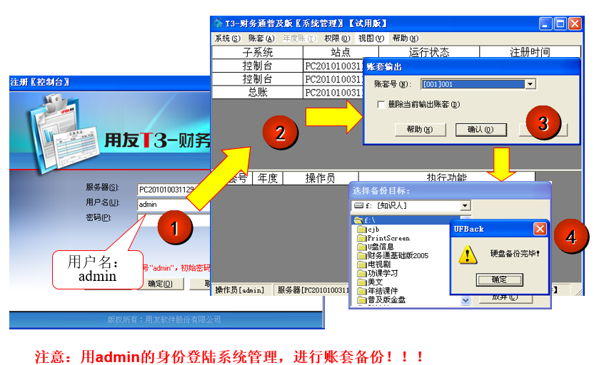 答:系統(tǒng)管理中必須以admin身份登錄才能備份賬套