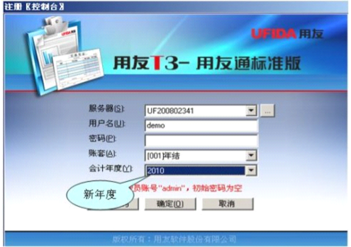 操作:賬套主管重新以新年度登錄系統(tǒng)管理