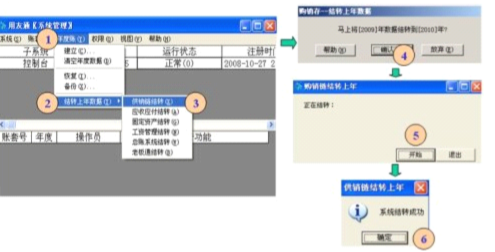 操作:年度賬->結(jié)轉(zhuǎn)上年數(shù)據(jù)->供銷鏈結(jié)轉(zhuǎn)->確認(rèn)->開始->確定