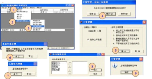操作:年度賬->結(jié)轉(zhuǎn)上年數(shù)據(jù)->工資管理結(jié)轉(zhuǎn)->確認(rèn)->->是否選擇清零項(xiàng)->選擇清零項(xiàng)