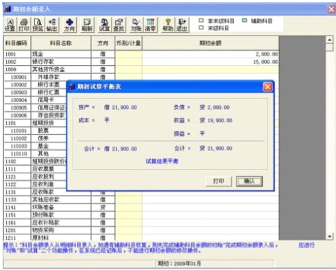 操作:總賬->設(shè)置->期初余額->試算,進(jìn)行試算平衡的檢查