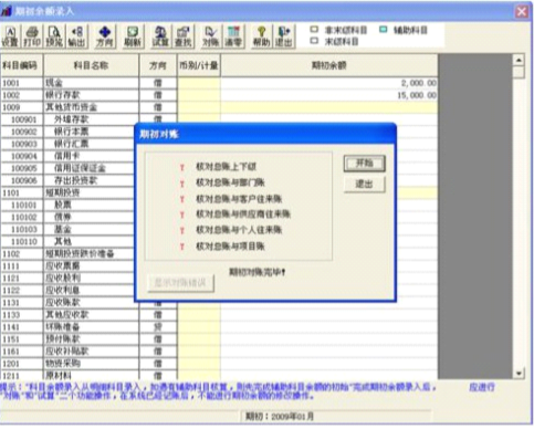 試算平衡后,進(jìn)行對(duì)賬,選擇【對(duì)賬】,無(wú)誤后再把本年的期初數(shù)據(jù)與上年的期末數(shù)據(jù)進(jìn)