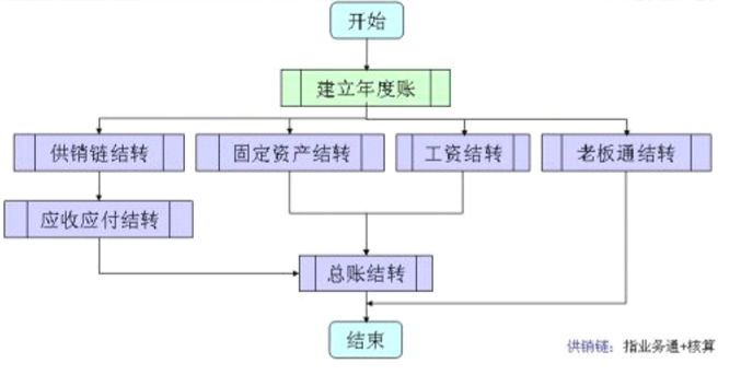 答:供銷鏈、固定資產(chǎn)、工資、老板通模塊結(jié)轉(zhuǎn)不分先后,其它按年結(jié)流程圖執(zhí)行