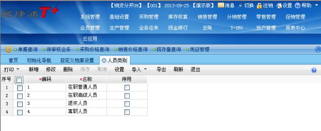 3、點擊“新增”增加人員類別下的詳細檔案,包括在職普通人員、在職高級人員、退休人員、離職人員。