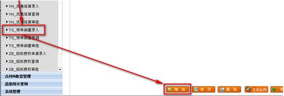 登錄銷管系統(tǒng)http://upsale.yonyou.com/ 在左樹分類【審批業(yè)務(wù)】下,點擊選擇【特殊銷售錄入】。在打開的右側(cè)區(qū)域點擊按鈕【增加】,如下圖。