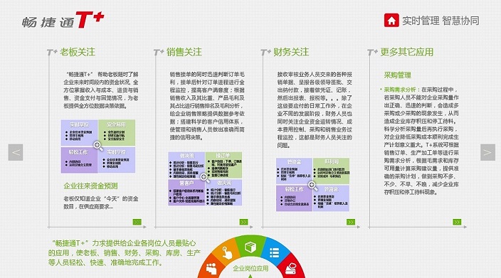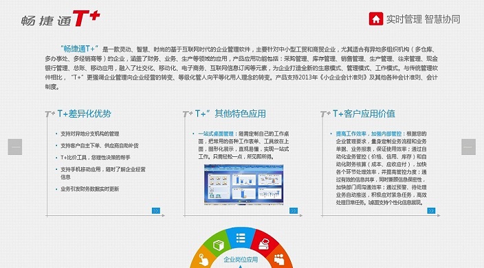 產(chǎn)品應(yīng)用功能包括:采購管理、銷售管理、庫存管理、往來管理、現(xiàn)金銀行、總賬、T-UFO報(bào)表;主要應(yīng)用于小型商貿(mào)企業(yè)、工業(yè)企業(yè)與工貿(mào)企業(yè)財(cái)務(wù)業(yè)務(wù)一體化管理。